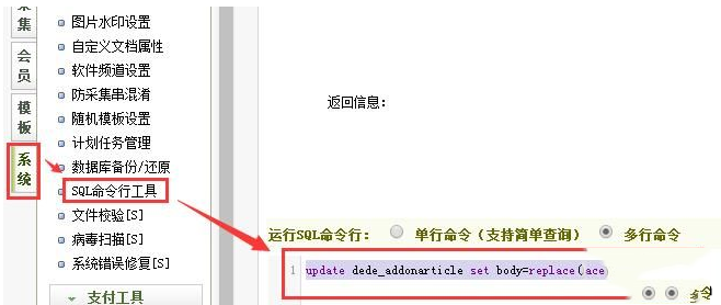 1、后臺——系統(tǒng)——SQL命令行工具,之后輸入如下代碼: